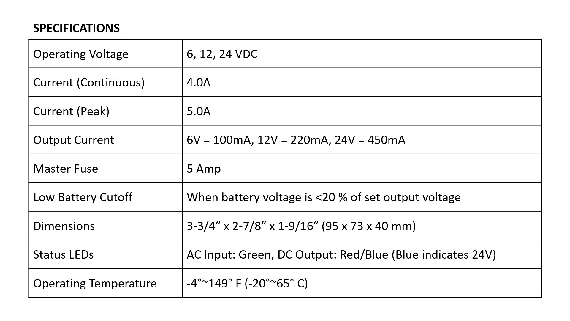 - Selectable (6, 12, 24 VDC) voltage output