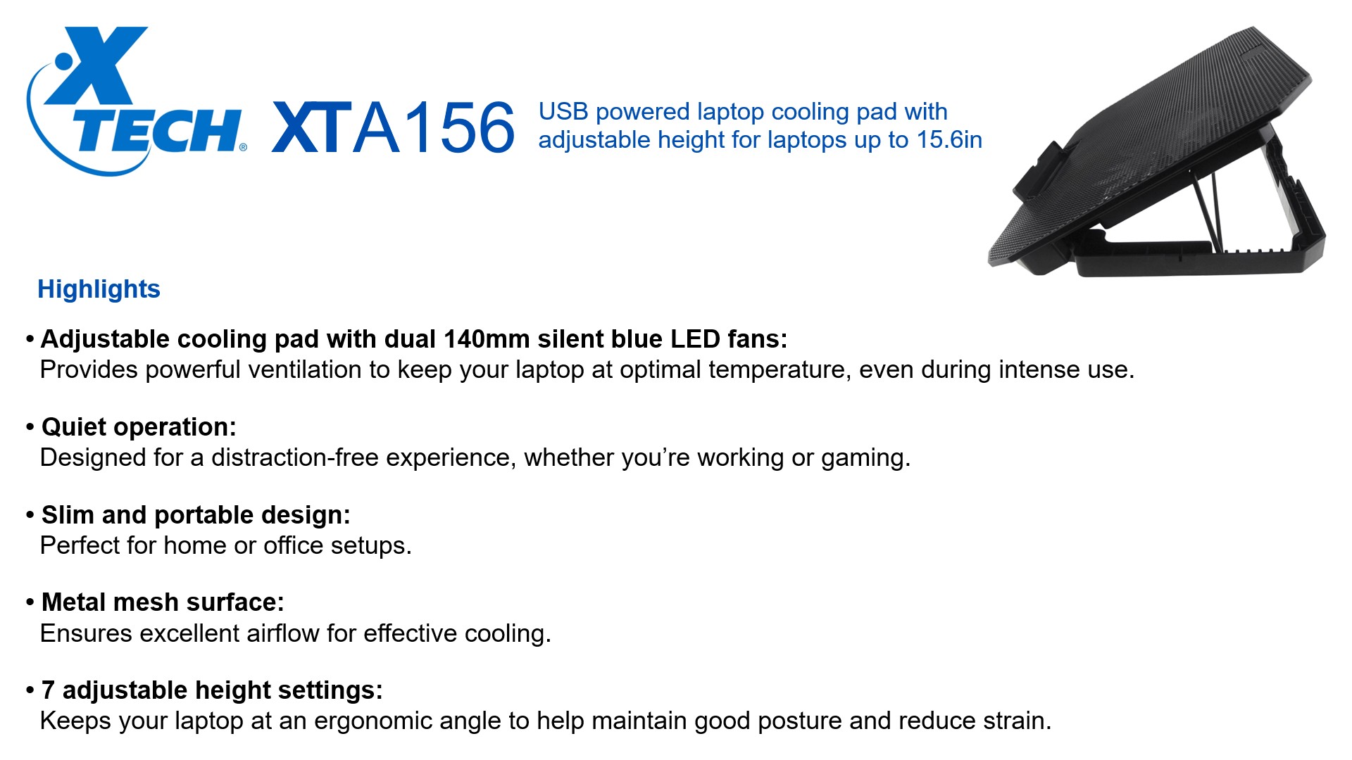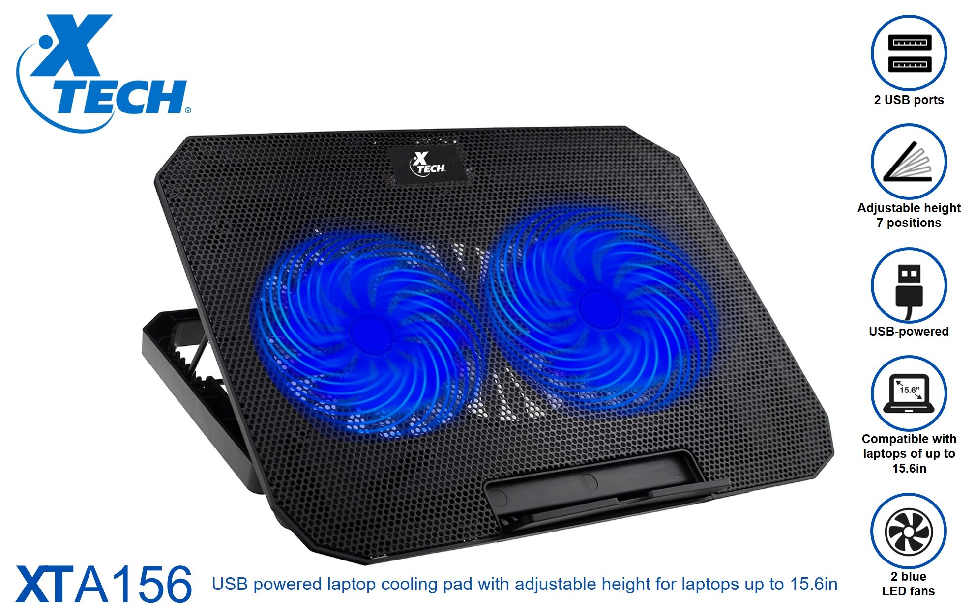 COOLING PAD | XTECH XTA-156 USB POWERED FOR LAPTOPS UP TO 15.6″