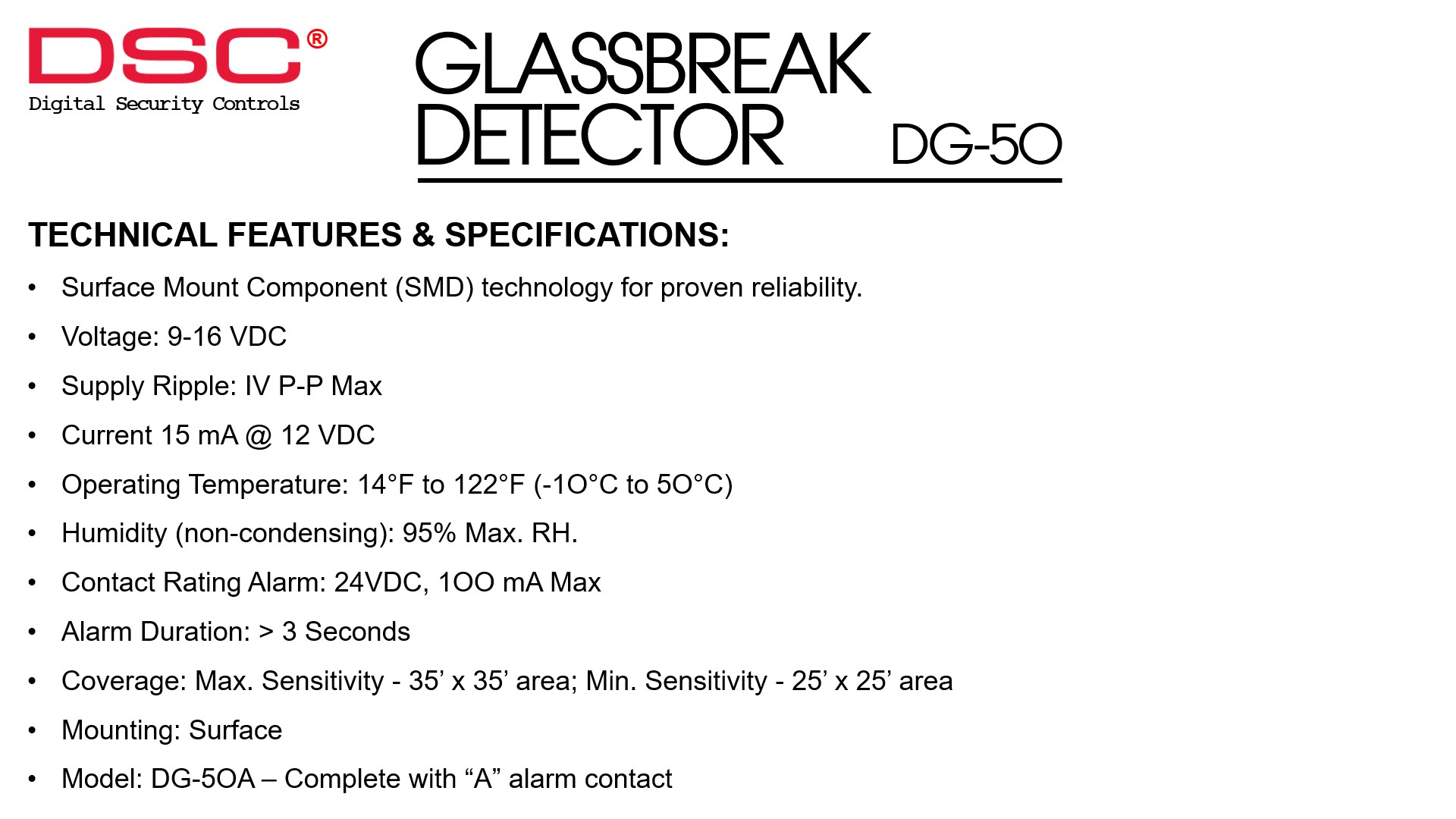 - Coverage: Max. Sensitivity – 35’ x 35’ area; Min. Sensitivity – 25’ x 25’ area