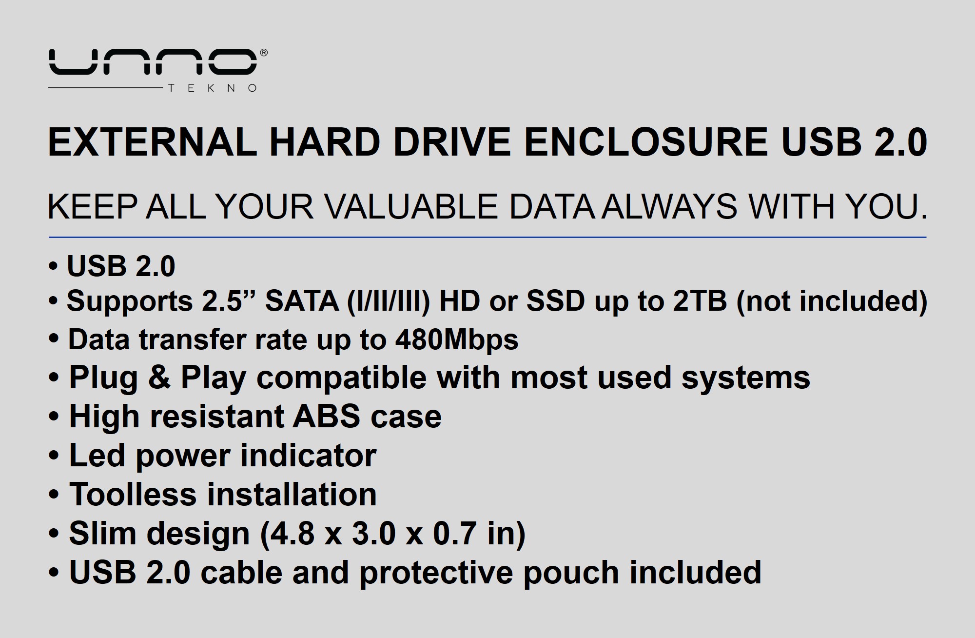 ENCLOSURE | UNNO TEKNO EN3212BK EXTERNAL HARD DRIVE USB 2.0 2.5″