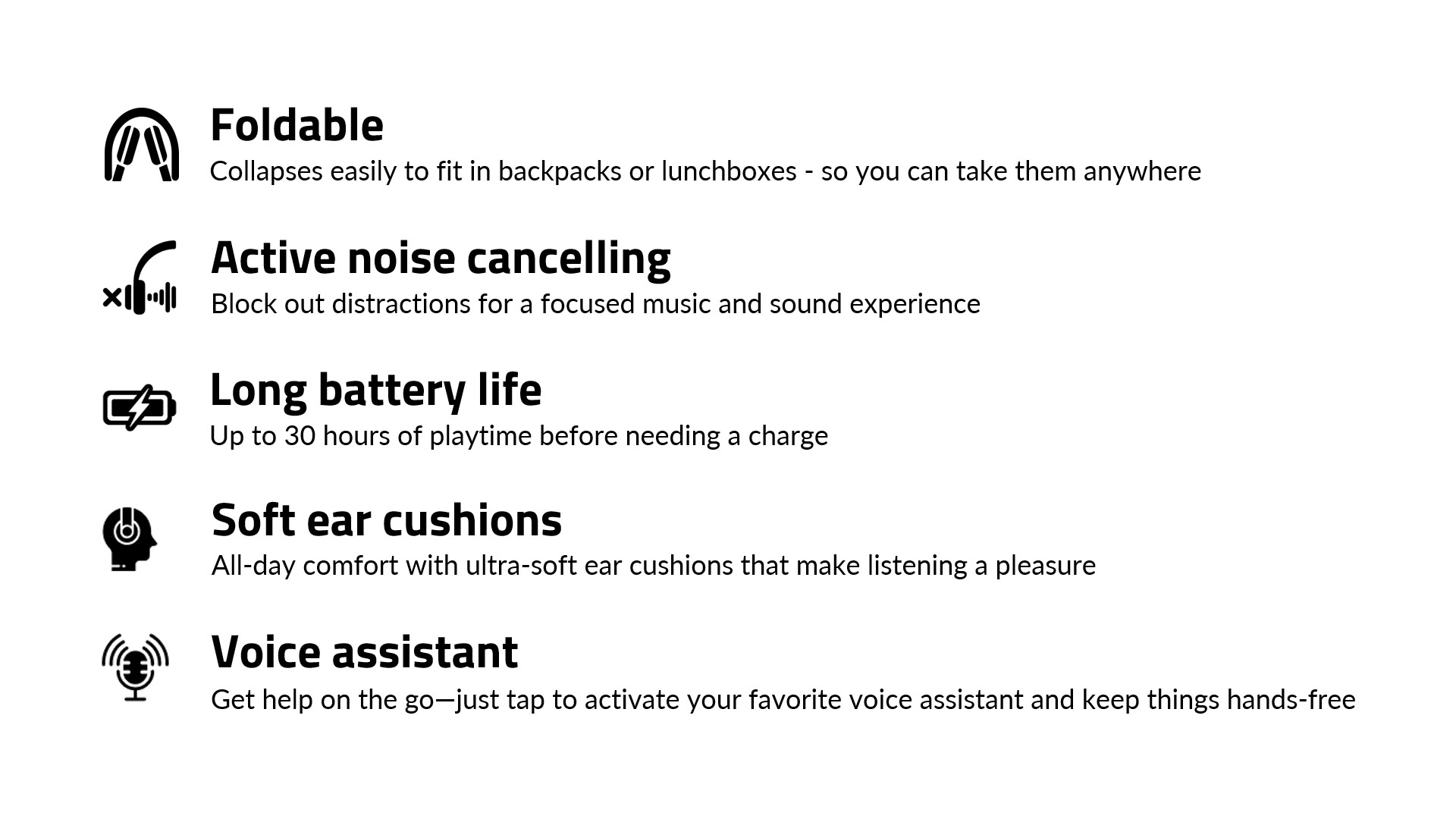 Enjoy up to 30 hours of playtime with these comfortable over-ear headphones, equipped with 20 hours of ANC (Active Noise Cancelling) technology. Perfect for long wear, the soft ear cushions and hands-free voice assistant help keep your day moving.