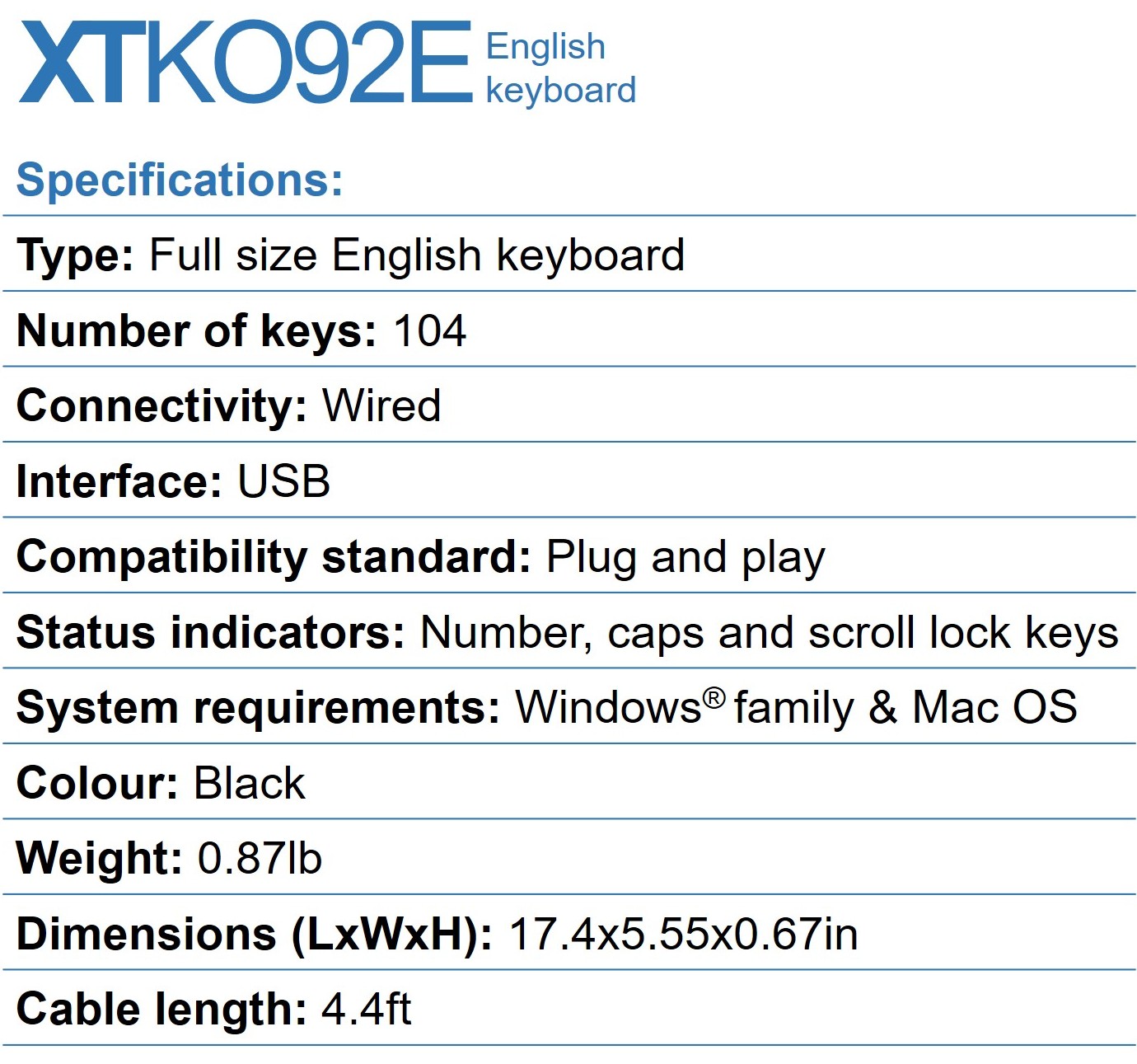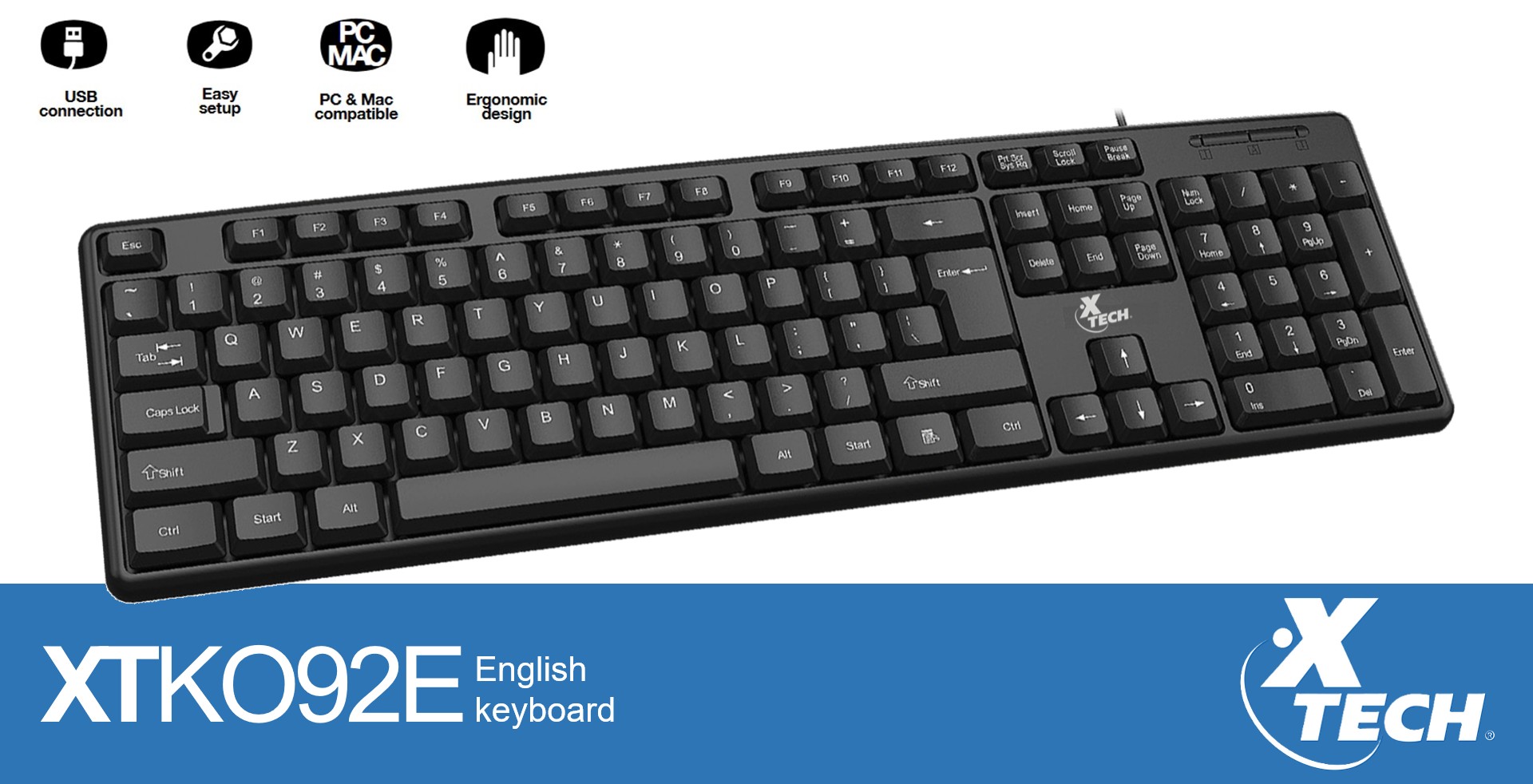 KEYBOARD – XTECH XTK092E USB WIRED STANDARD