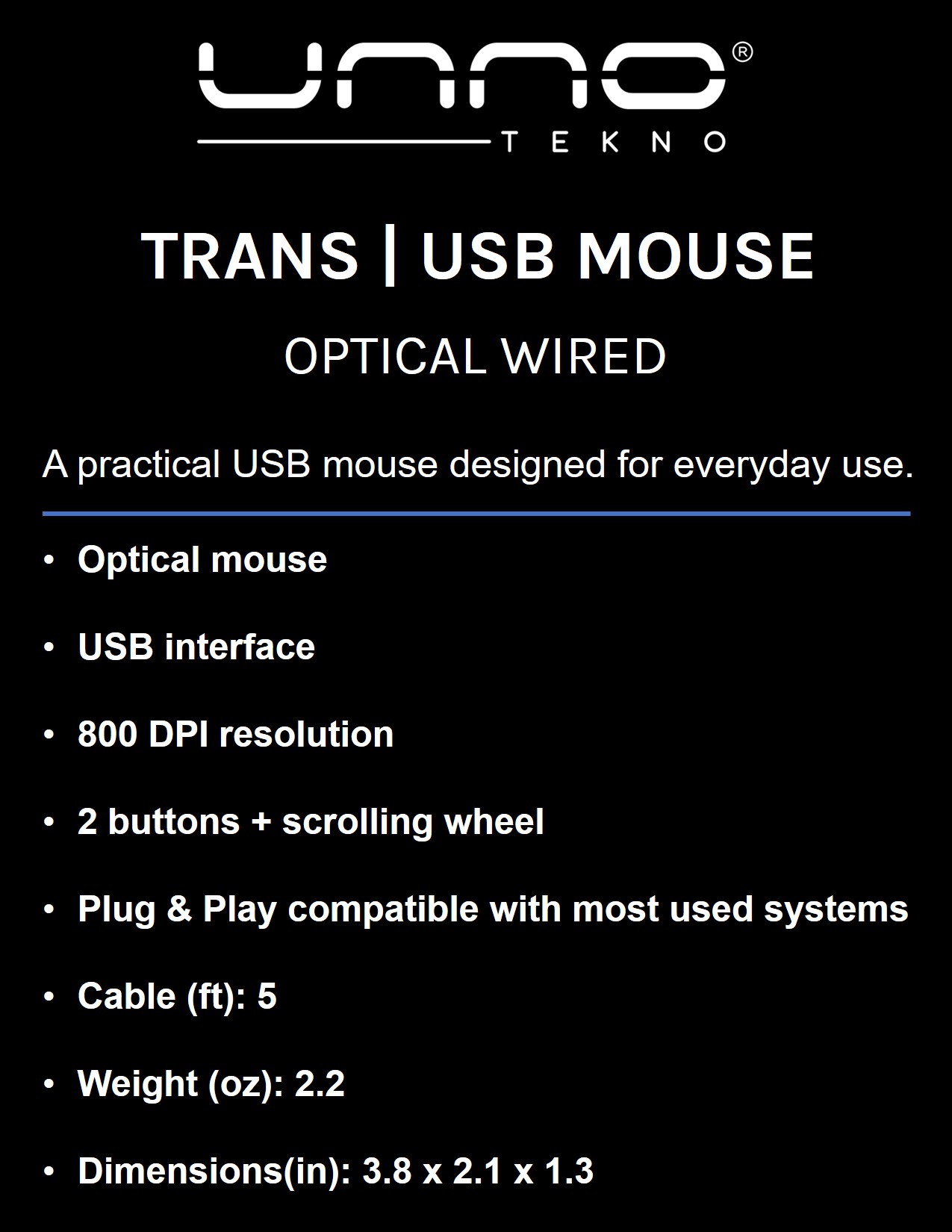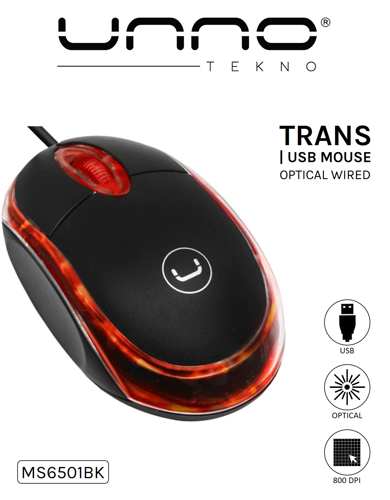 MOUSE | UNNO TEKNO MS6501BK OPTICAL WIRED USB