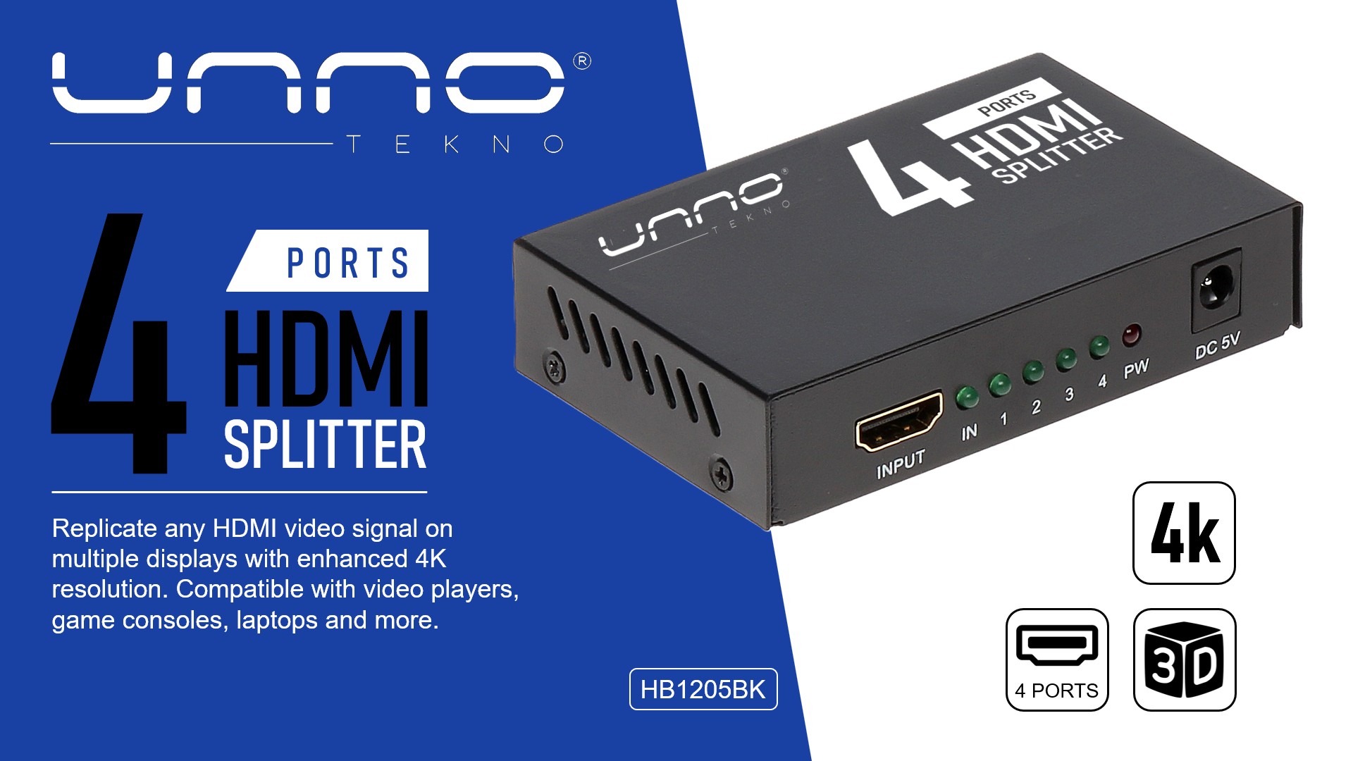 SPLITTER | UNNO TEKNO HB1205BK 4K 4-PORTS HDMI
