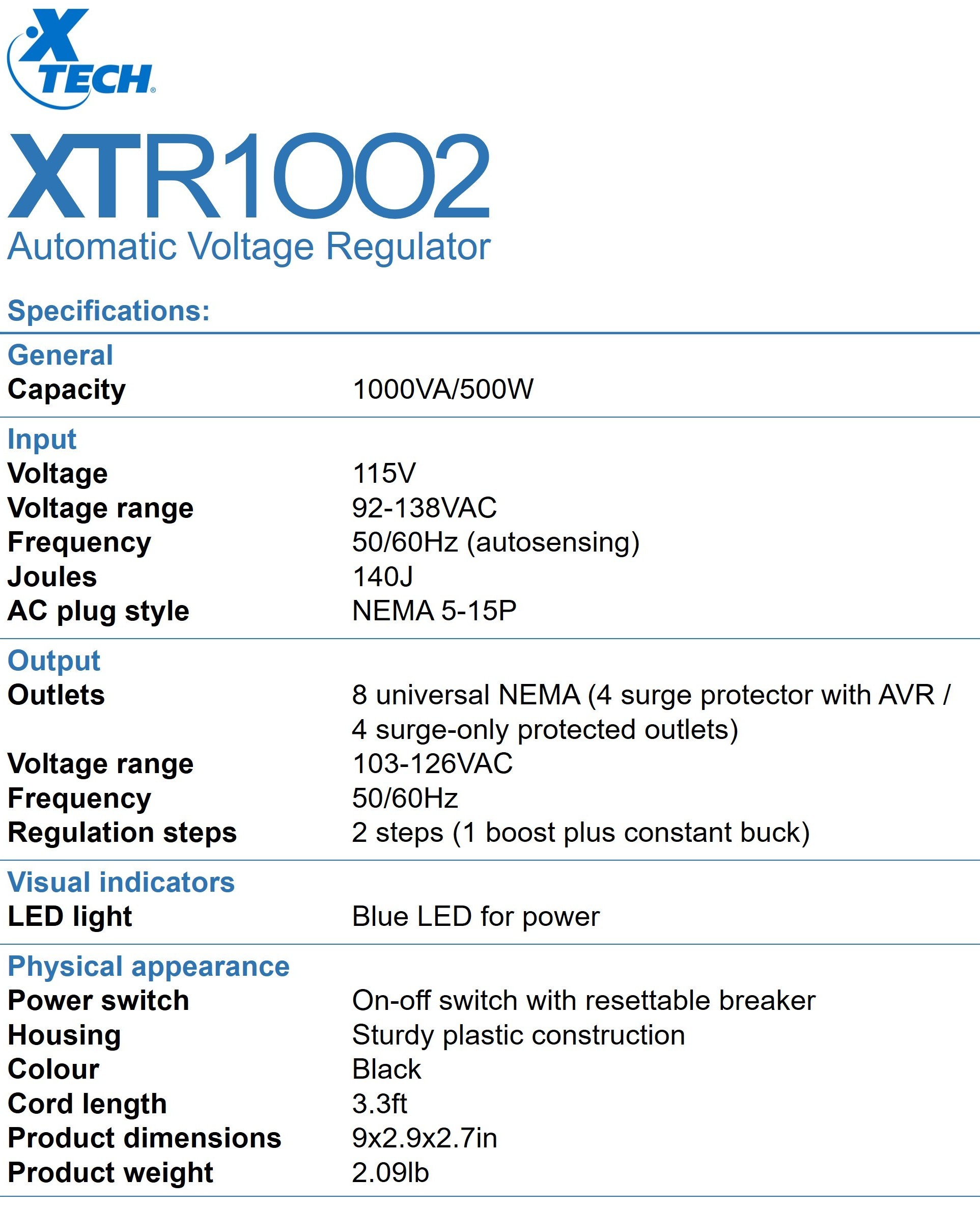 VOLTAGE REGULATOR | XTECH XTR-1002 AUTOMATIC 1000VA/500W